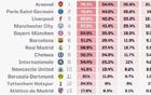 • Opta本赛季欧冠夺冠概率:阿森纳21.13%居首,巴黎红军紧随其后