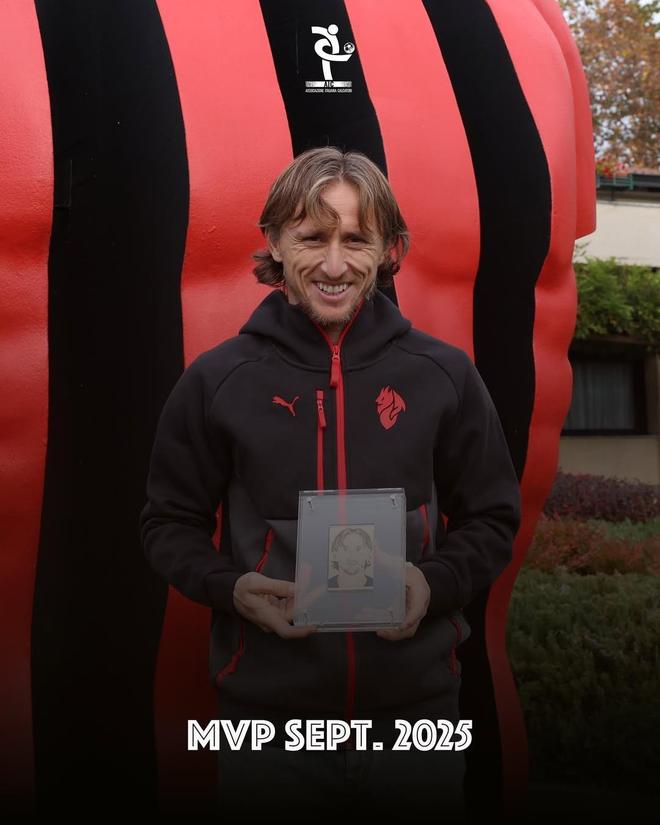 官方消息,米兰中场莫德里奇领取了意大利球员协会意甲9月最佳球员奖。